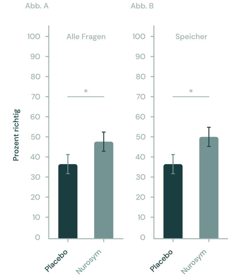 In klinischen Studien zeigten Patienten innerhalb von 5 Tagen eine 32%ige Verbesserung des Gedächtnisses und eine 26%ige Lernleistung mit Nurosym, was signifikante Verbesserungen sowohl in der Geschwindigkeit als auch in der Genauigkeit bei verschiedenen kognitiven Aufgaben im Vergleich zu Placebo zeigt.