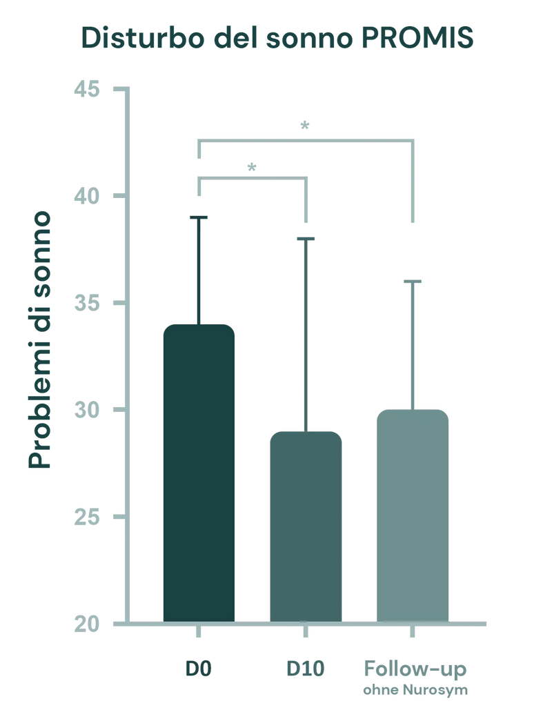 (Abb.). Veränderungen im Schlaf (PROMIS Schlafstörung) über drei Zeitpunkte: vor der Intervention, nach der Intervention und beim 1-monatigen Follow-up. Boxplots werden für nichtparametrische Daten verwendet, während Säulendiagramme parametrische Daten darstellen. Fehlerbalken spiegeln den Standardfehler wider. *p < 0,05 (Parasym Clinical Trial, 2024).