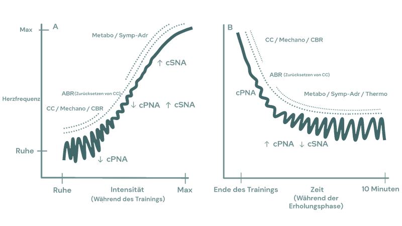 Nach dem Training nimmt die Aktivität des Vagusnervs signifikant zu, was eine schnelle Abnahme der Herzfrequenz fördert und die Erholung erleichtert. Nurosym verbessert insbesondere nach aerobem Training den Vagalen Tonus, was bedeutet, dass der Vagusnerv effektiver darin wird, die Herzfrequenz sowohl in Ruhe als auch während der Erholung zu senken, was zur allgemeinen kardiovaskulären Effizienz und Gesundheit beiträgt.
