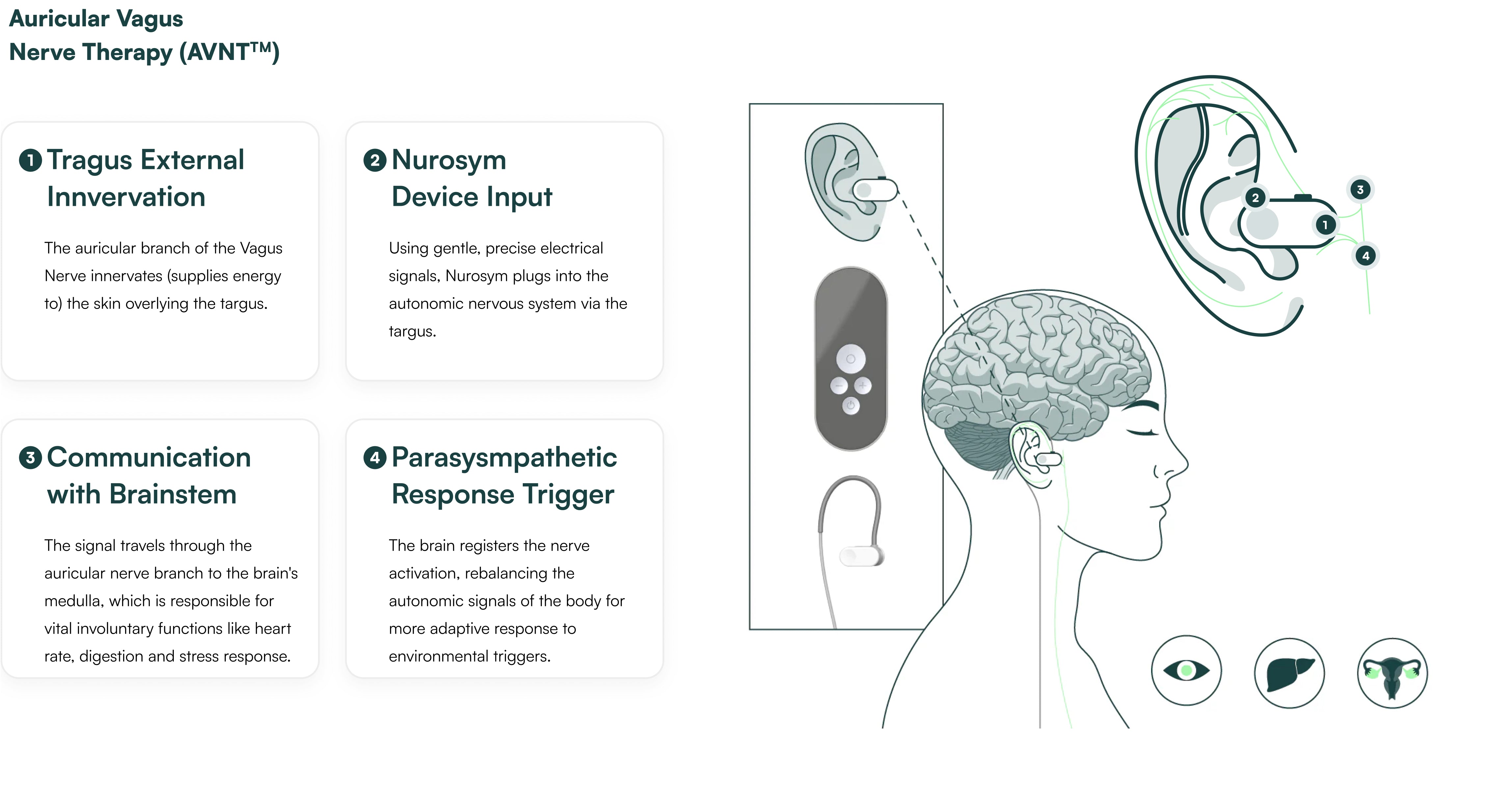 The Vagus Nerve plays a critical role in regulating the body's stress response. When it is underactive, the body remains in a heightened state of fight-or-flight, leading to persistent anxiety and poor recovery from stress. This is particularly problematic for individuals dealing with high workloads and performance pressure. Unlike other methods that require time and habit-building, Nurosym provides immediate relief with zero effort—just put it on and go about your day.
