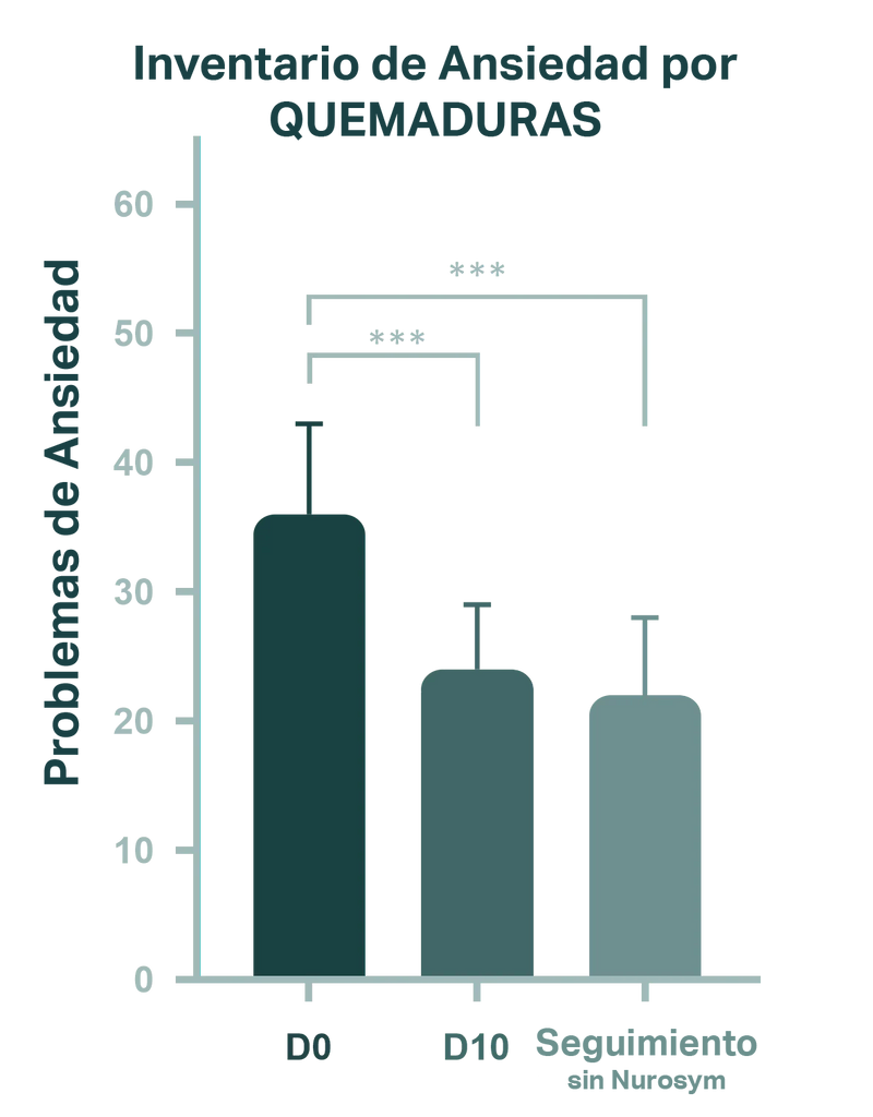 La reducción significativa y sostenida en los puntajes de ansiedad en un 35% observada con el uso de Nurosym sugiere que este dispositivo podría ser una estrategia de tratamiento valiosa para manejar la ansiedad y condiciones relacionadas.