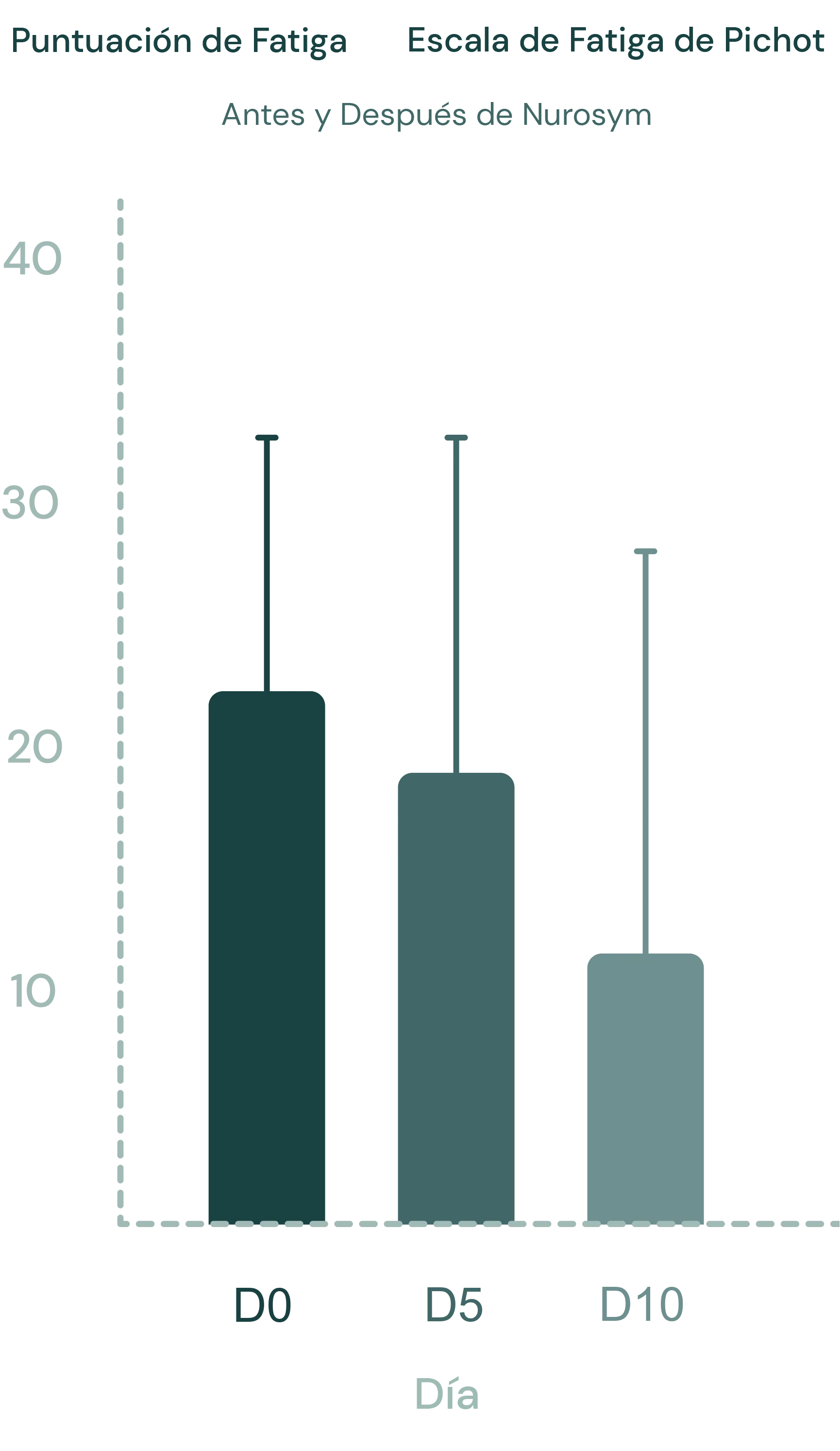 La evolución de la fatiga estimada mediante la escala de fatiga de Pichot durante el tratamiento experimentó una mejora de aproximadamente el 48% (D0 frente a D10, p<0,0001).