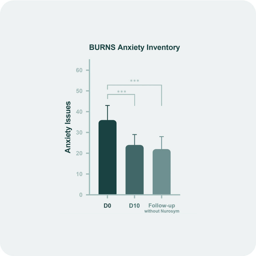 *Studies have demonstrated that pre-existing conditions such as anxiety further heighten the risk of conditions associated with chronic inflammation. Research on the Nurosym neuromodulation system has shown that it activates the vagus nerve, leading to a reduction in anxiety and stress responses. This targeted stimulation of the vagus nerve increases vagal tone and inhibits cytokine production in the inflammatory process. Both are important mechanisms for anxiety resilience.