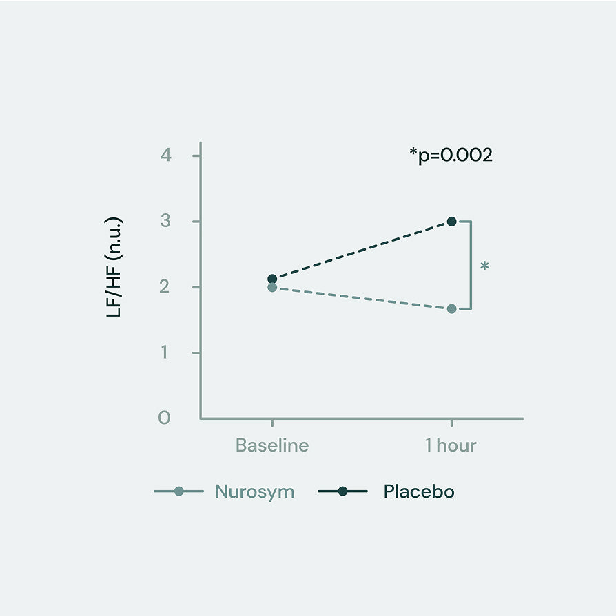 *The parasympathetic nervous system is the body’s internal relaxation & rest mechanism. HRV is an indicator of Vagus Nerve activity. Improving these parameters of HRV indicates targeted stimulation of the vagus nerve and activation of psychophysiological self-repair mechanisms. In a clinical trial, a one-hour session of Nurosym favourably altered all parameters of Heart Rate Variability (HRV), when compared to a placebo.