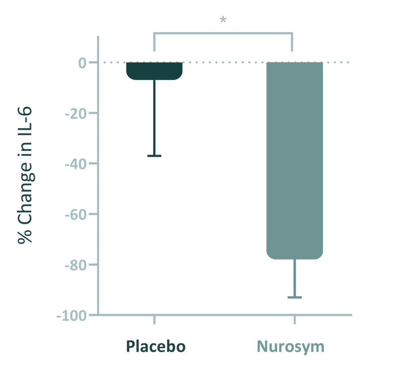 In clinical trials, after Nurosym neuromodulation, patients experienced even a 78% decrease in inflammatory cytokine levels (IL-6), reflecting the reduction of inflammatory processes in the brain.