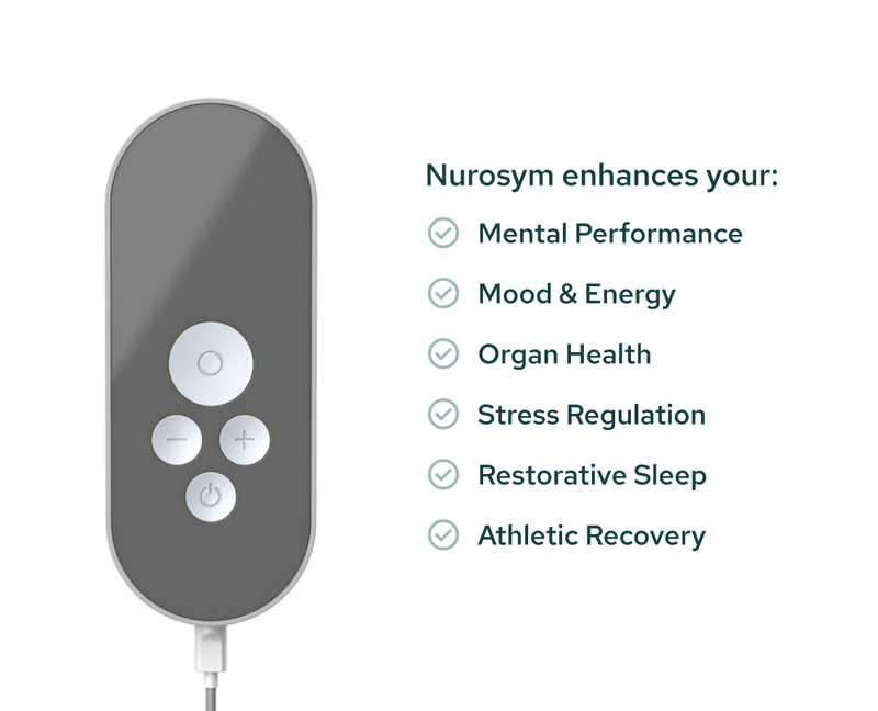 The stimulation provided by Nurosym improves vagal tone, which is crucial in the gut-brain axis, a critical communication pathway between the gastrointestinal system and the central nervous system. This improvement in vagal tone may lead to relief from symptoms commonly associated with dysautonomia, such as digestive tract problems, chronic fatigue, irregular heart rates, acute diarrhoea episodes, fainting, and sleep disturbances. This may also be beneficial in conditions like Type 2 Diabetes, Irritable Bowel Syndrome (IBS), Inflammatory Bowel Disease (IBD).