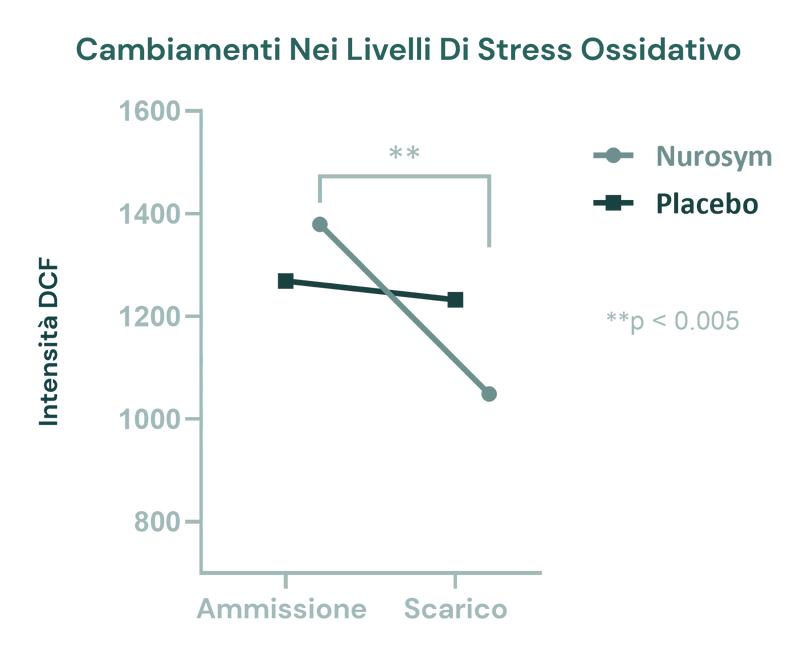 Livelli elevati di specie reattive dell'ossigeno (ROS) sono collegati a disturbi neurodegenerativi. Nurosym ha ridotto di circa il 24% i marcatori ROS, il che potrebbe proteggere i neuroni e potenzialmente rallentare la progressione di patologie come il morbo di Alzheimer e il morbo di Parkinson.